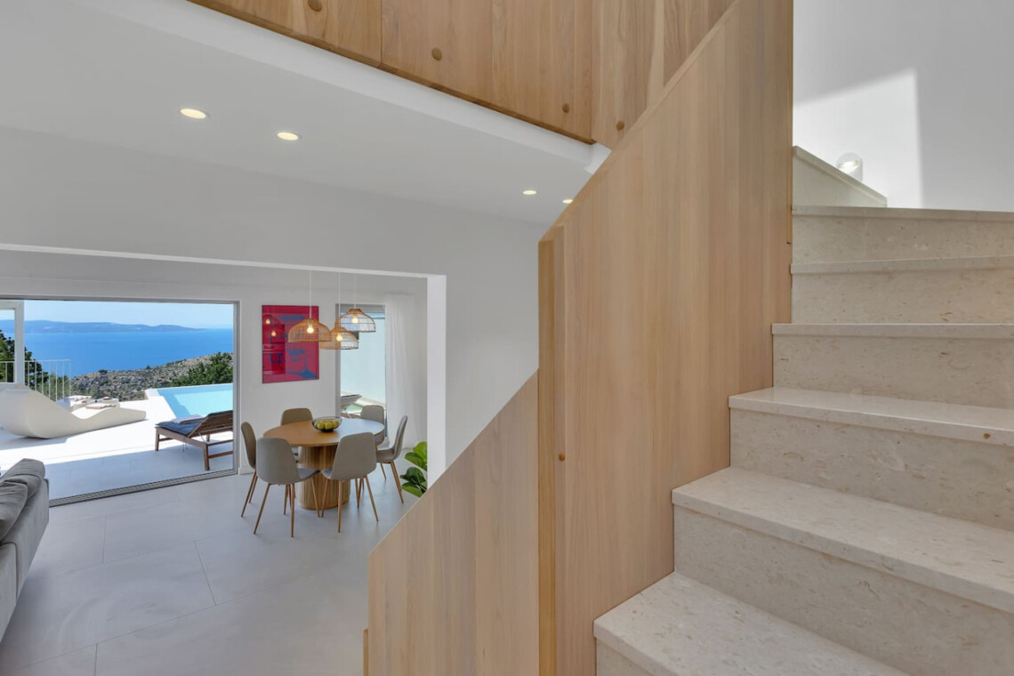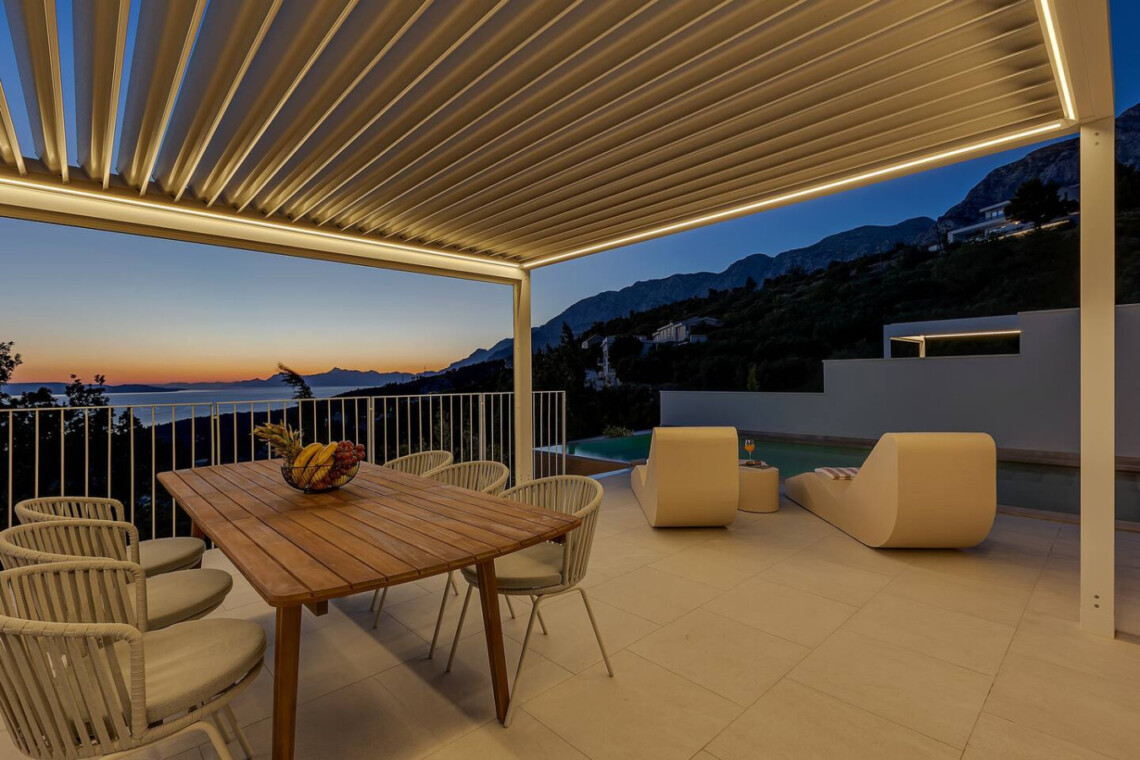 Die Villa Ester ist eine luxuriöse Doppelhaushälfte an der traumhaften Makarska Riviera und begeistert durch modernes Design, exklusive Ausstattung und eine einmalige Lage. Von der erhöhten Hanglage aus genießen Gäste einen spektakulären Blick auf das Adriatische Meer und die umliegenden Berge – der perfekte Ort für Ruhe und Erholung.