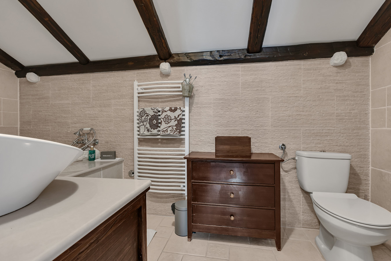 Im Inneren erwarten Sie stilvolle Wohnbereiche, eine voll ausgestattete Küche und komfortable Schlafzimmer, die eine warme, gemütliche Atmosphäre schaffen. Die großzügigen Außenbereiche bieten viel Platz zum Entspannen und Genießen: ein privater Swimmingpool, eine sonnige Terrasse und ein liebevoll angelegter mediterraner Garten laden zum Wohlfühlen ein.